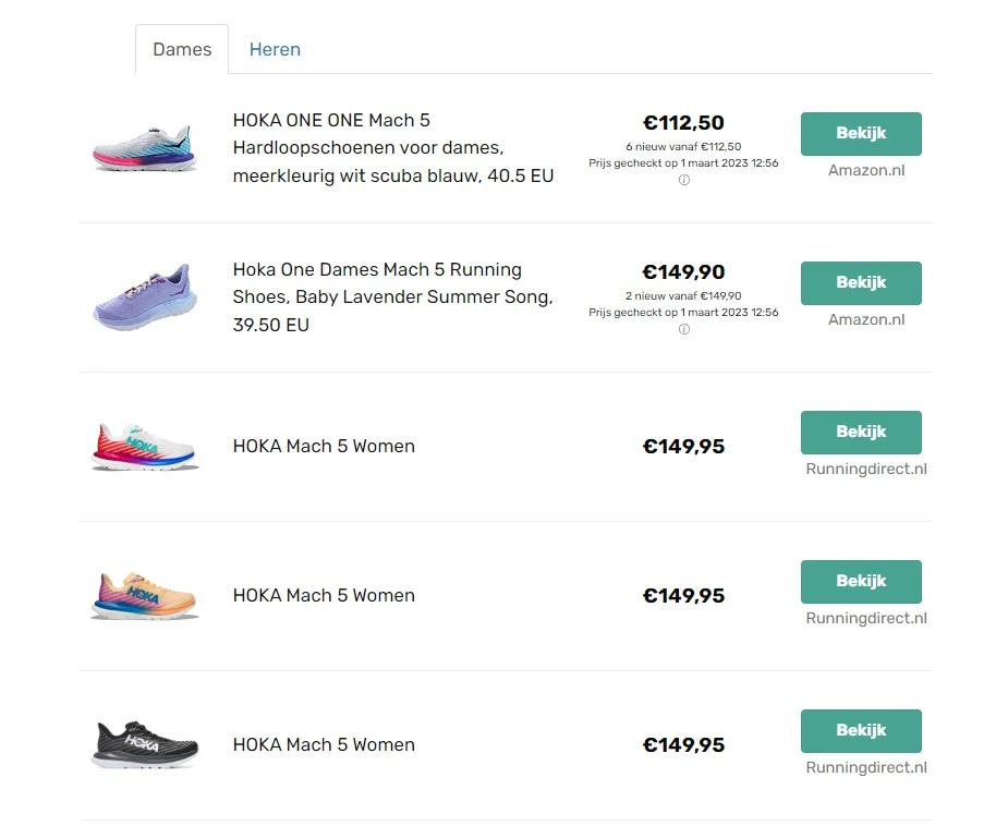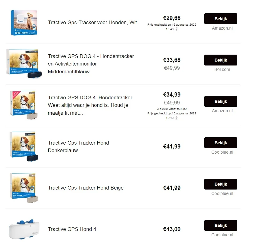 Een voorbeeld van een vergelijker van meerdere aanbieders van één product via een Content Egg widget. De prijzen worden automatisch elke nacht opgehaald. De laagste prijs staat altijd bovenaan!