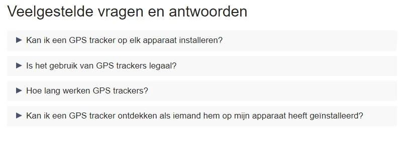 Hieronder zie je het FAQ blok in de nieuwe opmaak